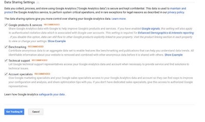 Be sure to select your appropriate time zone, too. This will make sure the data is in line with your business hours of operation. Leave all the data-sharing boxes set to on (checked) unless you have specific regulatory reasons for not doing so.
