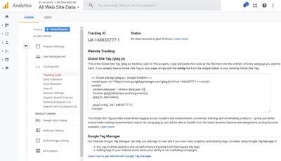 In the next screenshot you’ll see where the tracking snippet of code is located in the Google Analytics dashboard. In my experience most folks have a hard time finding it again after the initial setup.