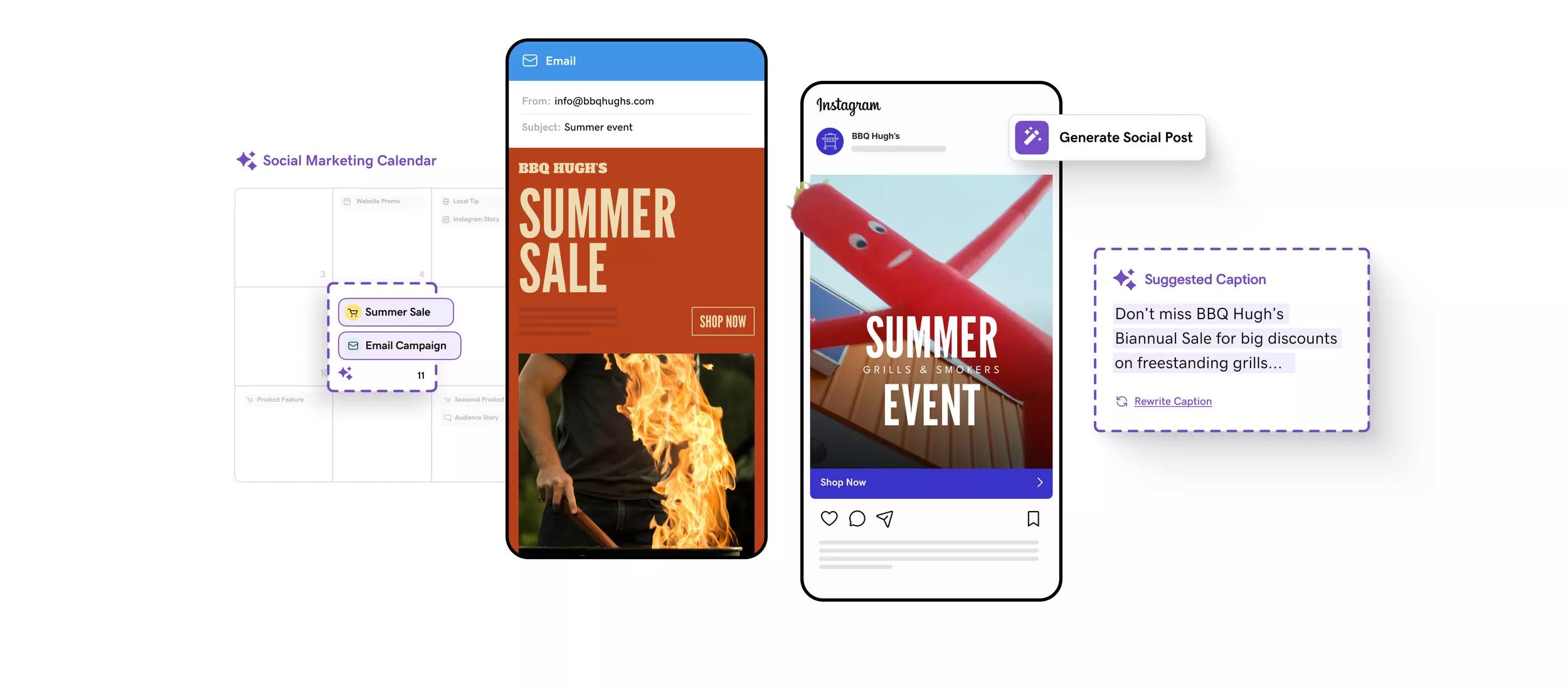 - Email Marketing: Email marketing helps you market your business by sending email campaigns to new and prospective customers. Email marketing automation guides you through the steps of building your mailing list to create customized AI-generated email content and automate the sending process.