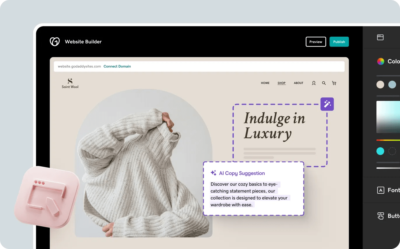 After your site is generated, our AI tools help you choose the fonts, colors, and other details to make it your own.