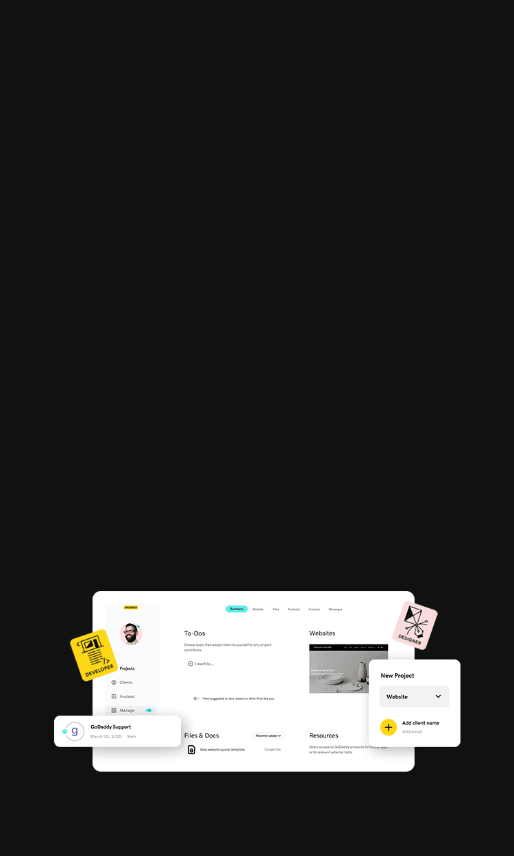 Load a shopping cart with GoDaddy products and share with your client for purchase.