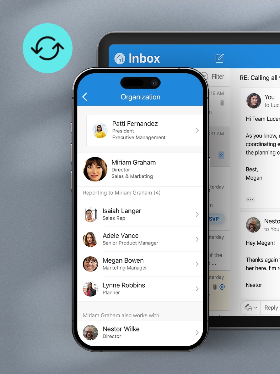 Ayez toujours vos emails les plus récents, vos contacts et vos rendez-vous à portée de main. Les services de messagerie de Microsoft 365 de GoDaddy sont compatibles avec Outlook, Apple Mail et d’autres programmes réputés, pour que tous vos appareils (de votre ordinateur portable à votre smartphone) restent à jour et synchronisés.