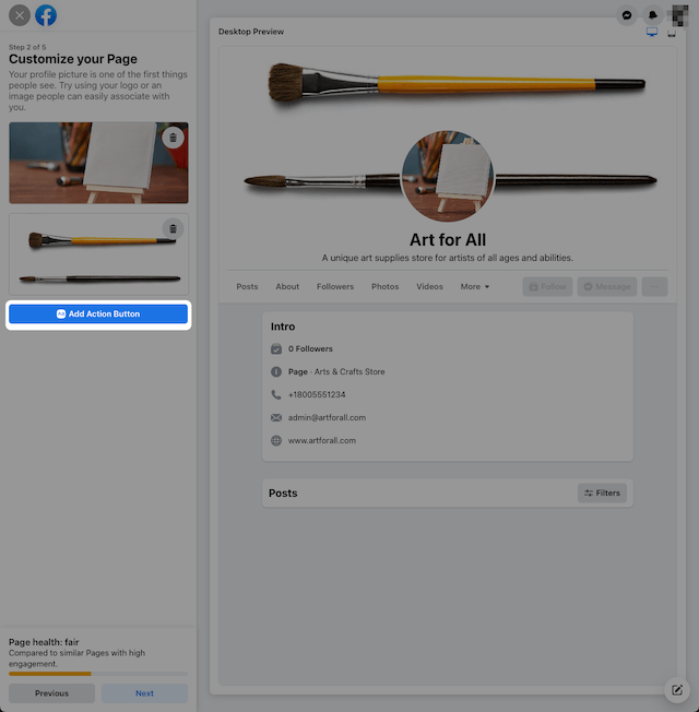 You can also add an action button to your Page, which is a call-to-action (CTA) for visitors to your Page. To add an action button: