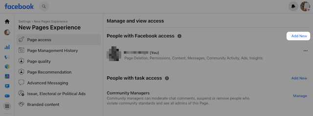 3. Follow the prompts and enter the name or email address of the person who should have access to manage the Page.