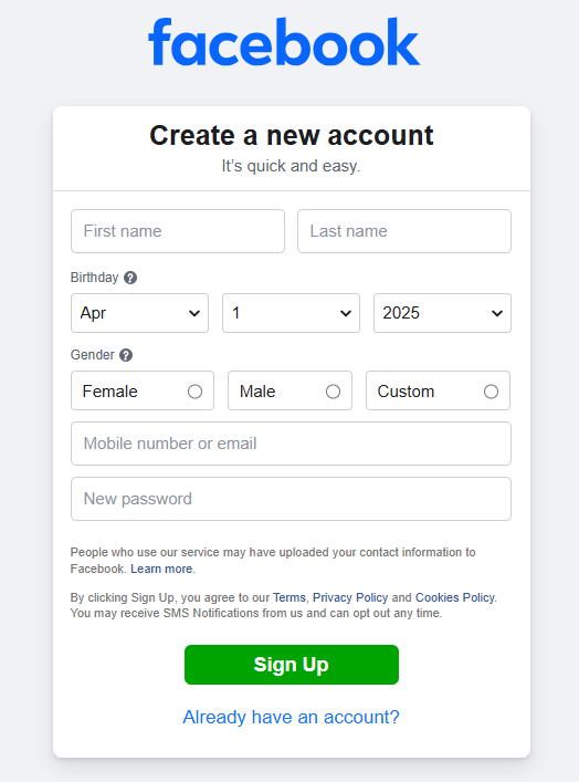 All users on Facebook must have a Facebook account, which lets you create a personal profile, engage with other users, and create Pages.