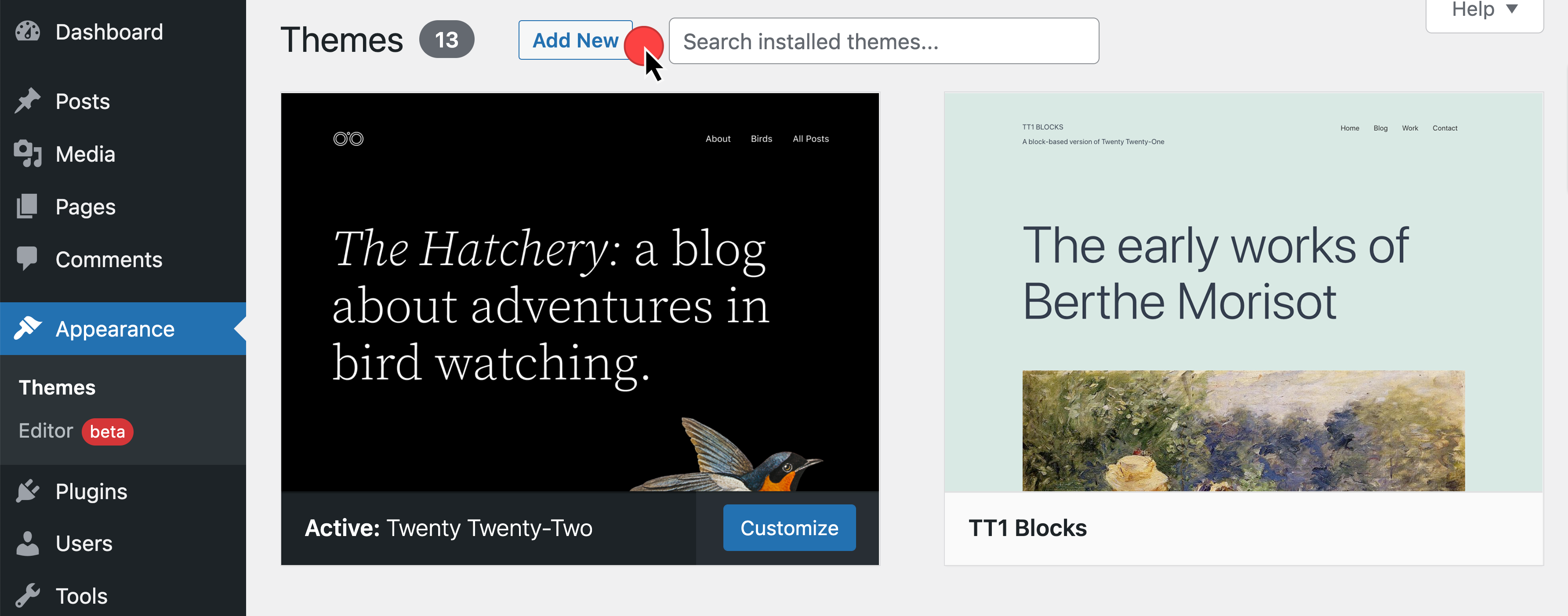 Go to Appearance > Themes > Add new and search for Twenty Twenty Two, or download it from the Theme repository.