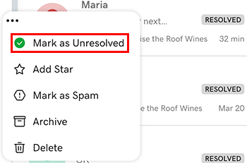 • You can also manually Mark as Unresolved (open) if needed.