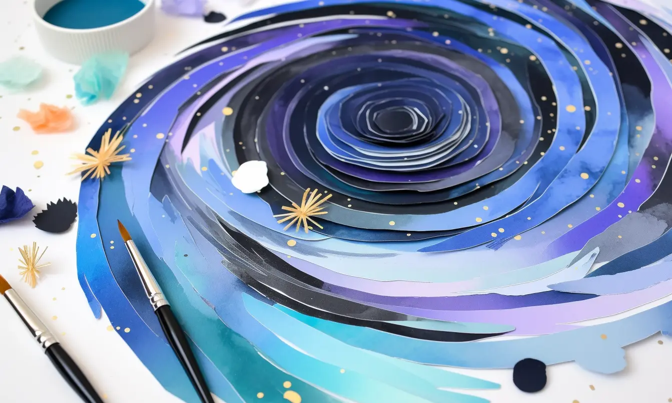 - Layering: Stacks elements to create depth, perspective.