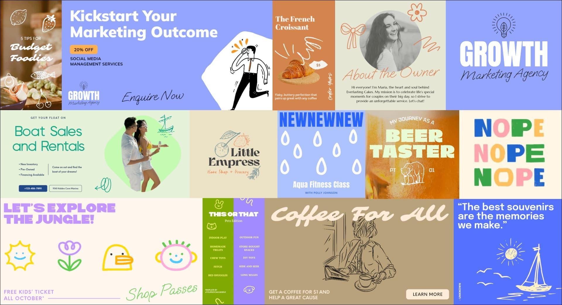 Keeping up to date on the latest graphic design trends is easy. GoDaddy Studio is full of the latest concepts and ideas to give you instant inspiration. Attending industry events and conferences, reading design newsletters, and listening to expert podcasts can also help keep you up to date.