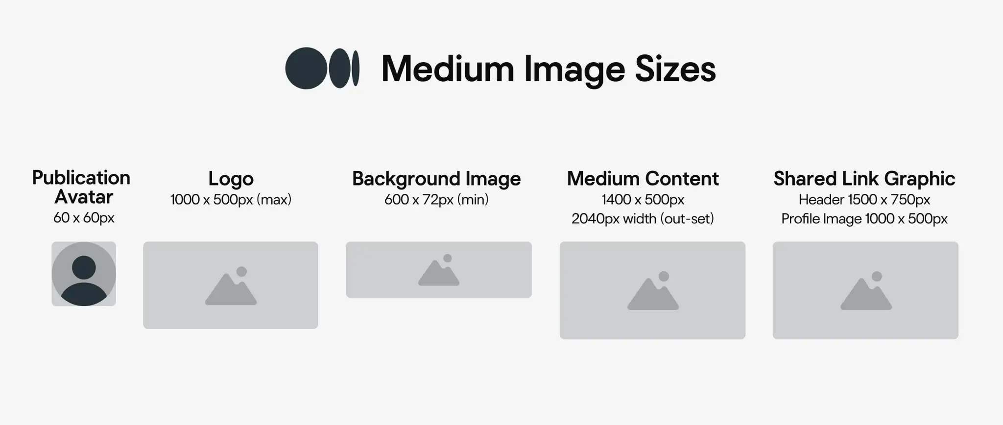 Medium profile picture | 1000px x 500px (max) 60px x 60px (publication avatar) |