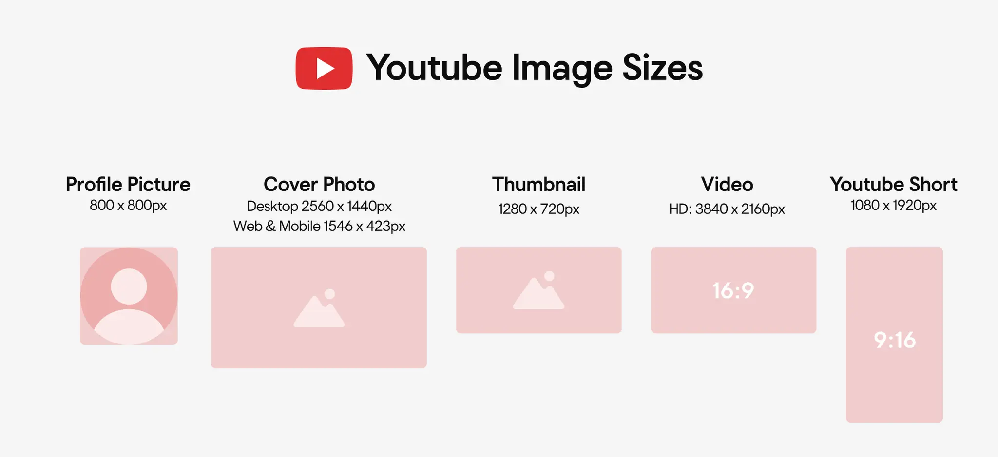 YouTube content images | 16:9 aspect ratio (video) 3840px x 2160px (HD) |