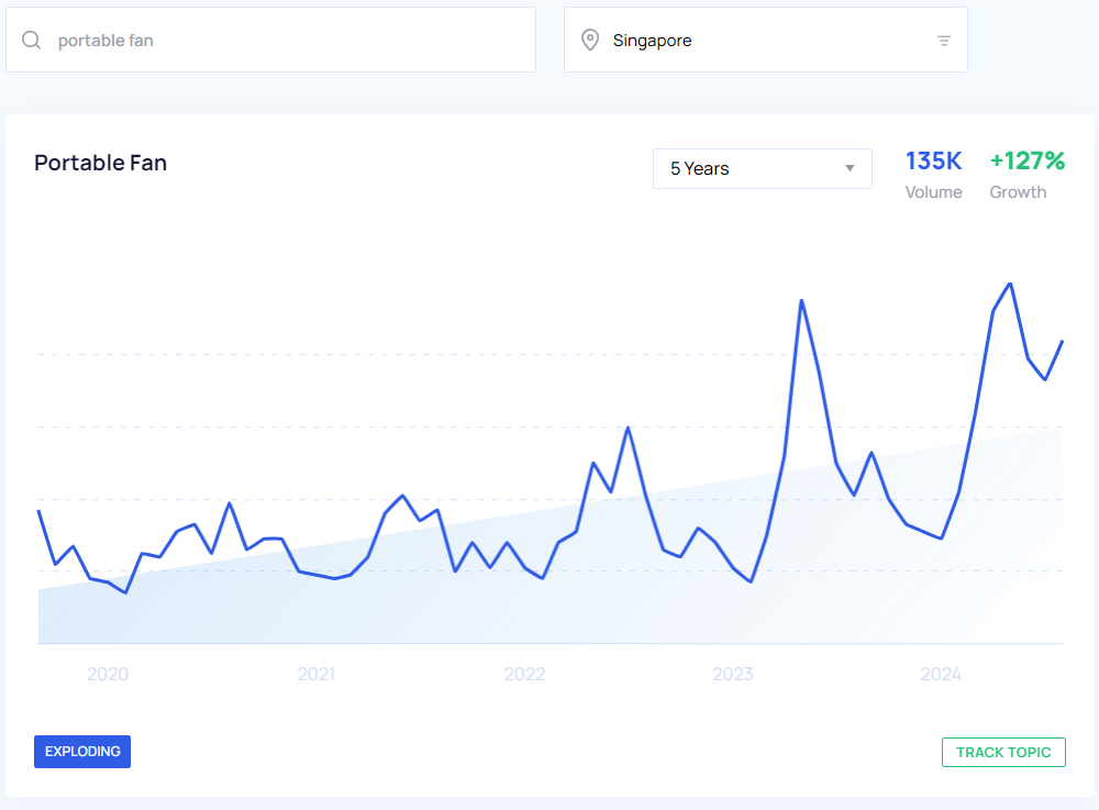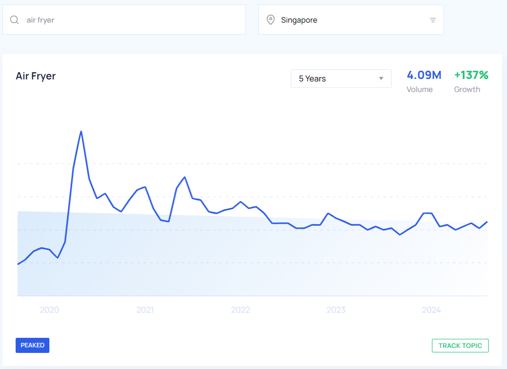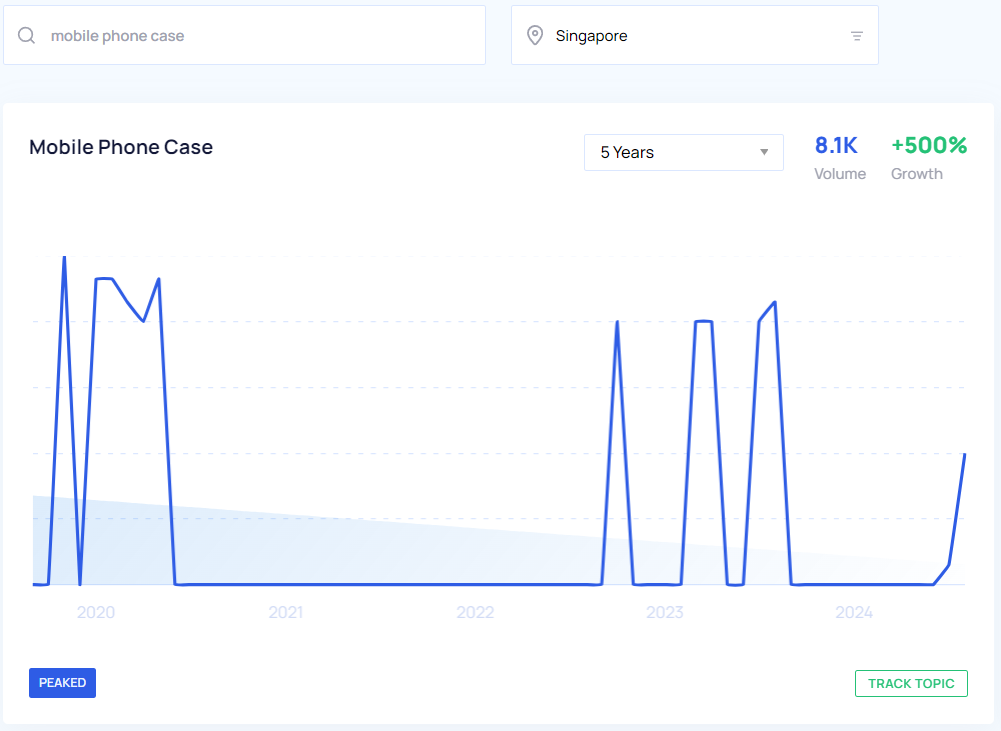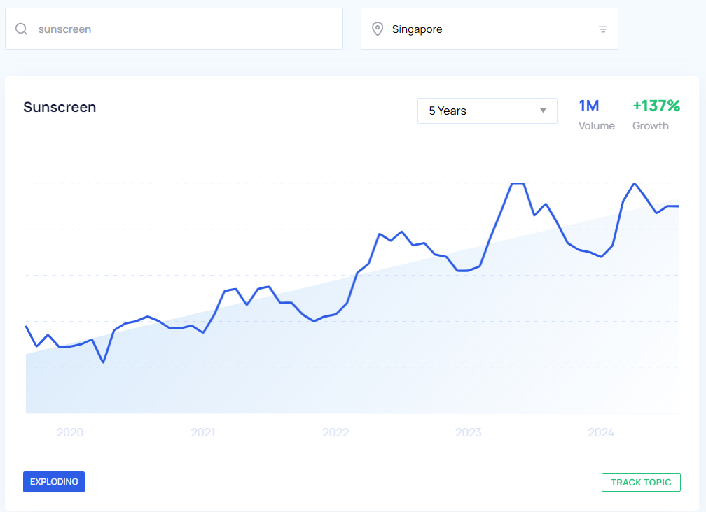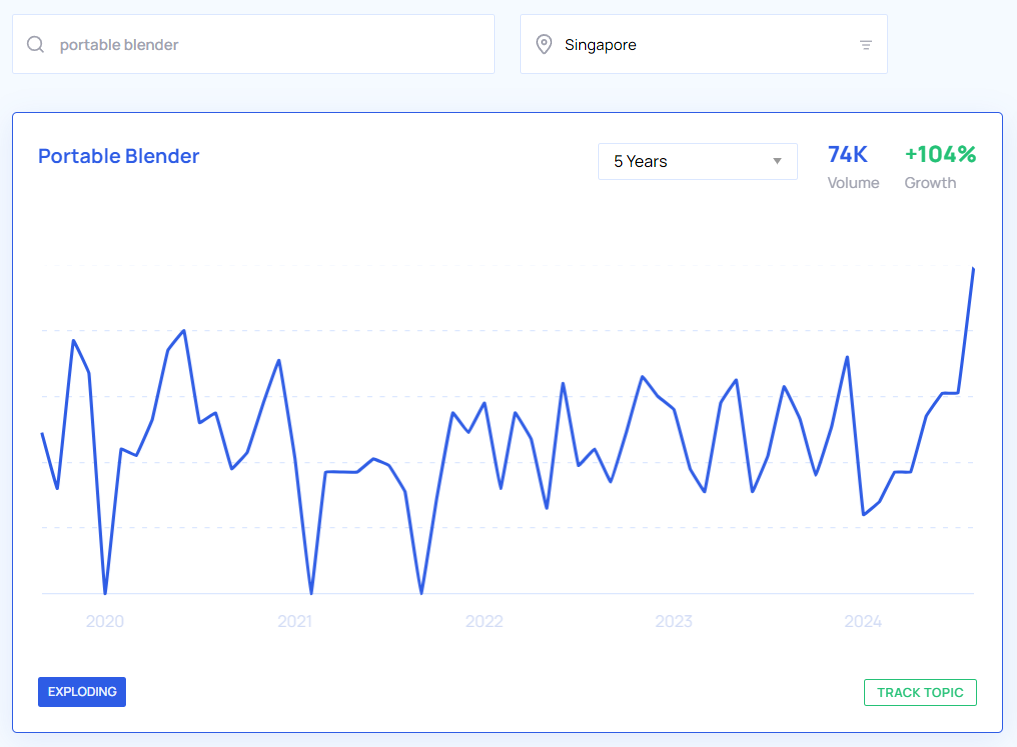 With the help of Google Trends and Google Keyword Planner, we were able to get a pretty clear look at what the trending products are in Singapore to sell this year based on YoY growth and search volume from May 2023 to May 2024. We also took a look at the interest over time for the past five years which you can view in the Google Trends graphs below.