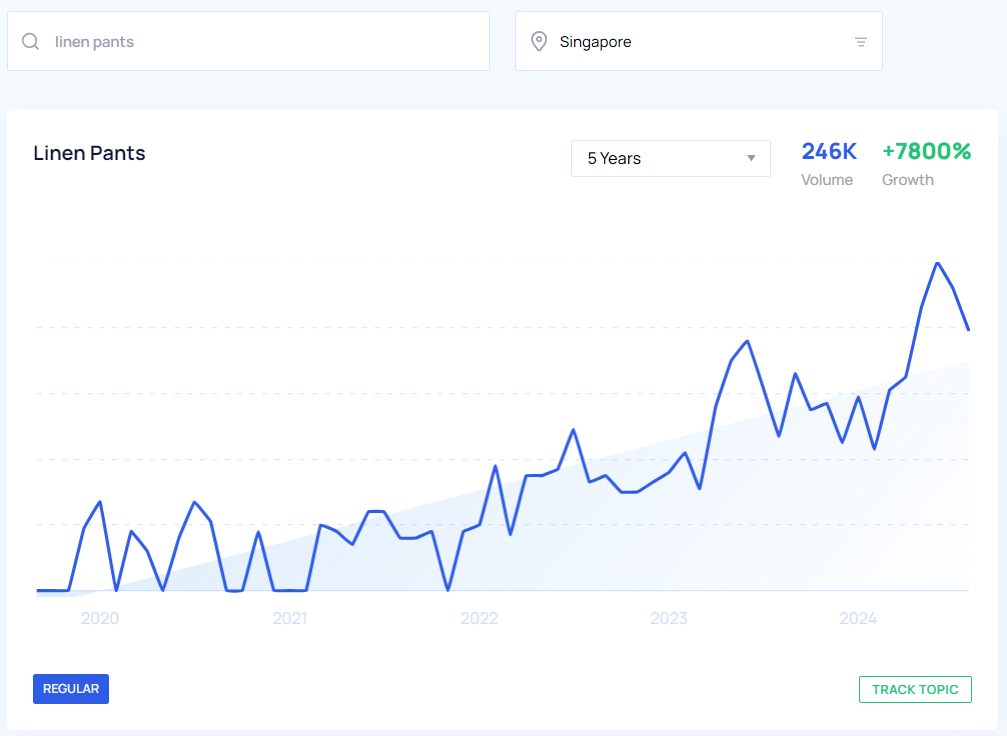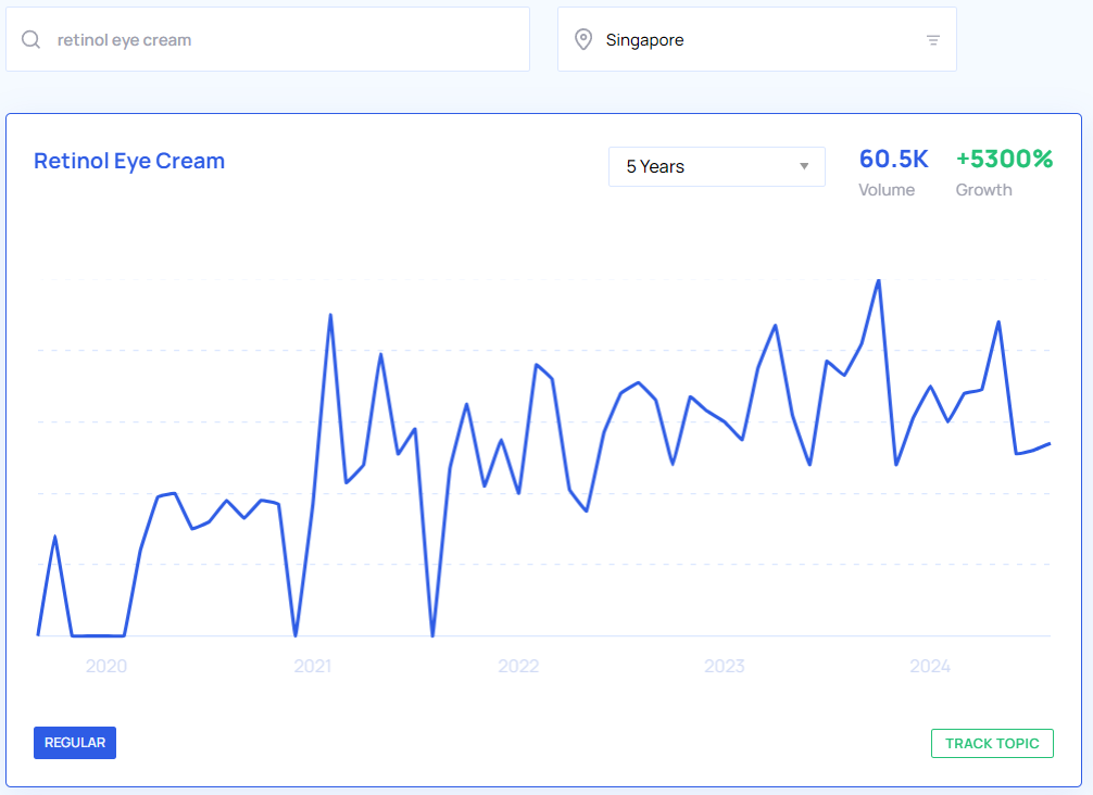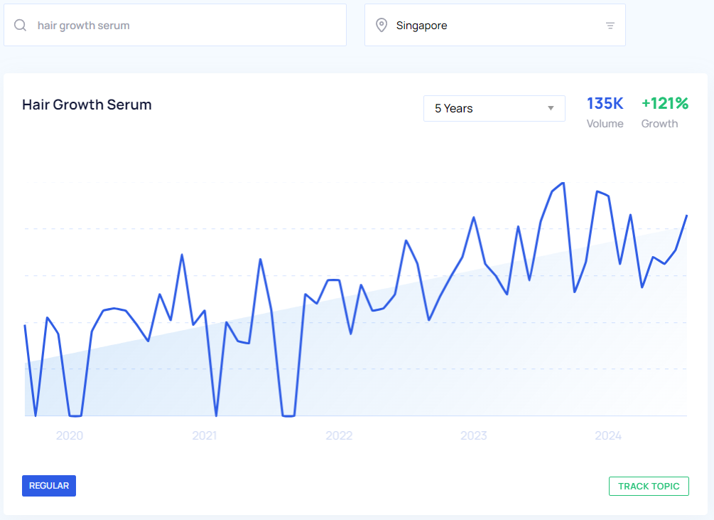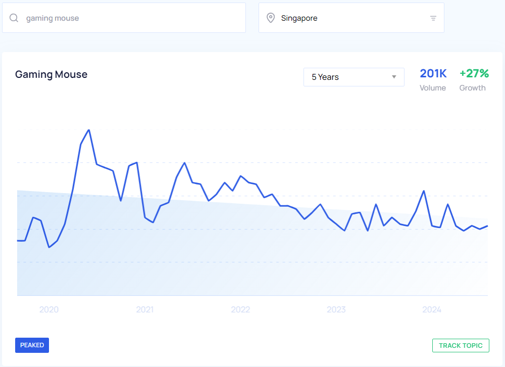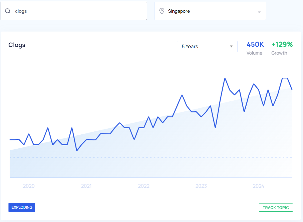 With the help of Google Trends and Google Keyword Planner, we were able to get a pretty clear look at what the trending products are in Singapore to sell this year based on YoY growth and search volume from May 2023 to May 2024. We also took a look at the interest over time for the past five years which you can view in the Google Trends graphs below.