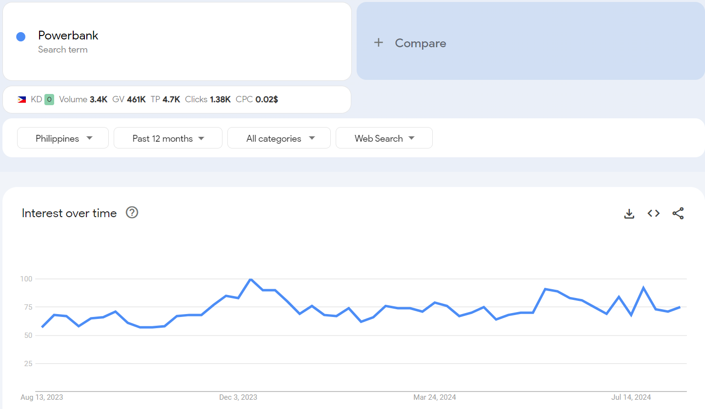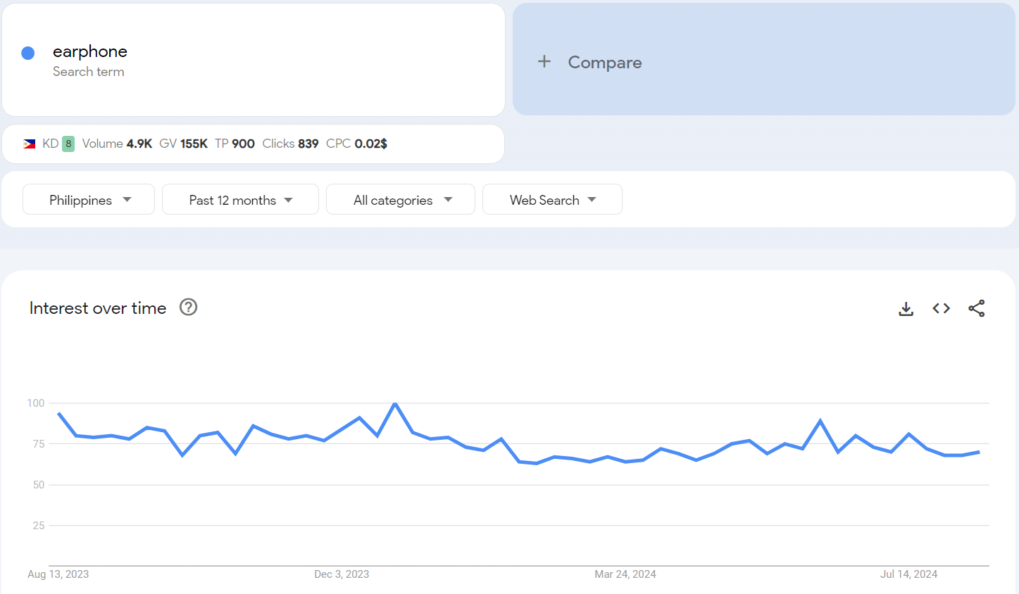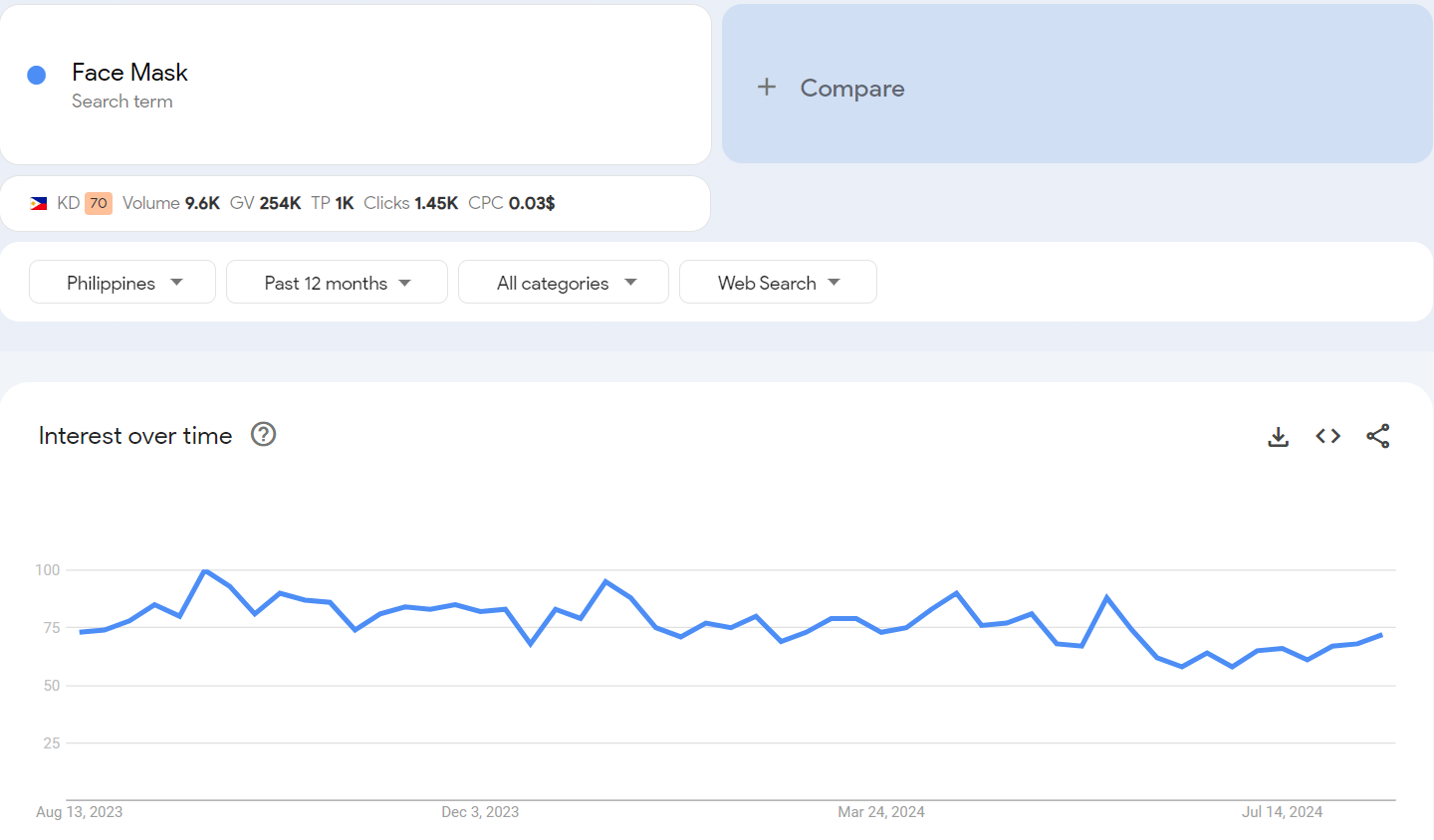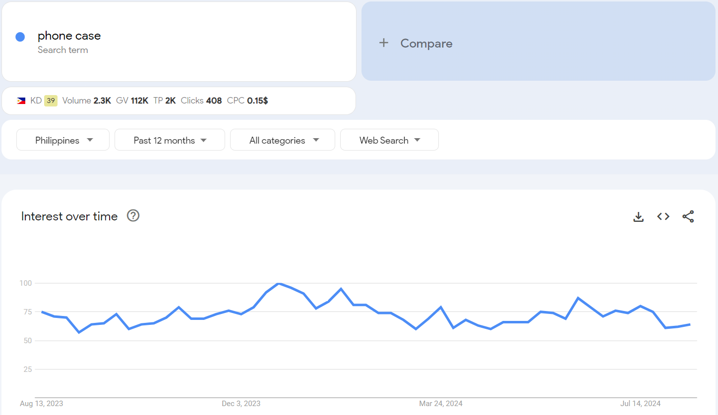 With the help of Google Trends and Google Keyword Planner, we were able to get a pretty clear look at what the trending products are in the Philippines to sell this year based on YoY growth and search volume from May 2023 to May 2024. We also took a look at the interest over time for the past five years which you can view in the Google Trends graphs below.