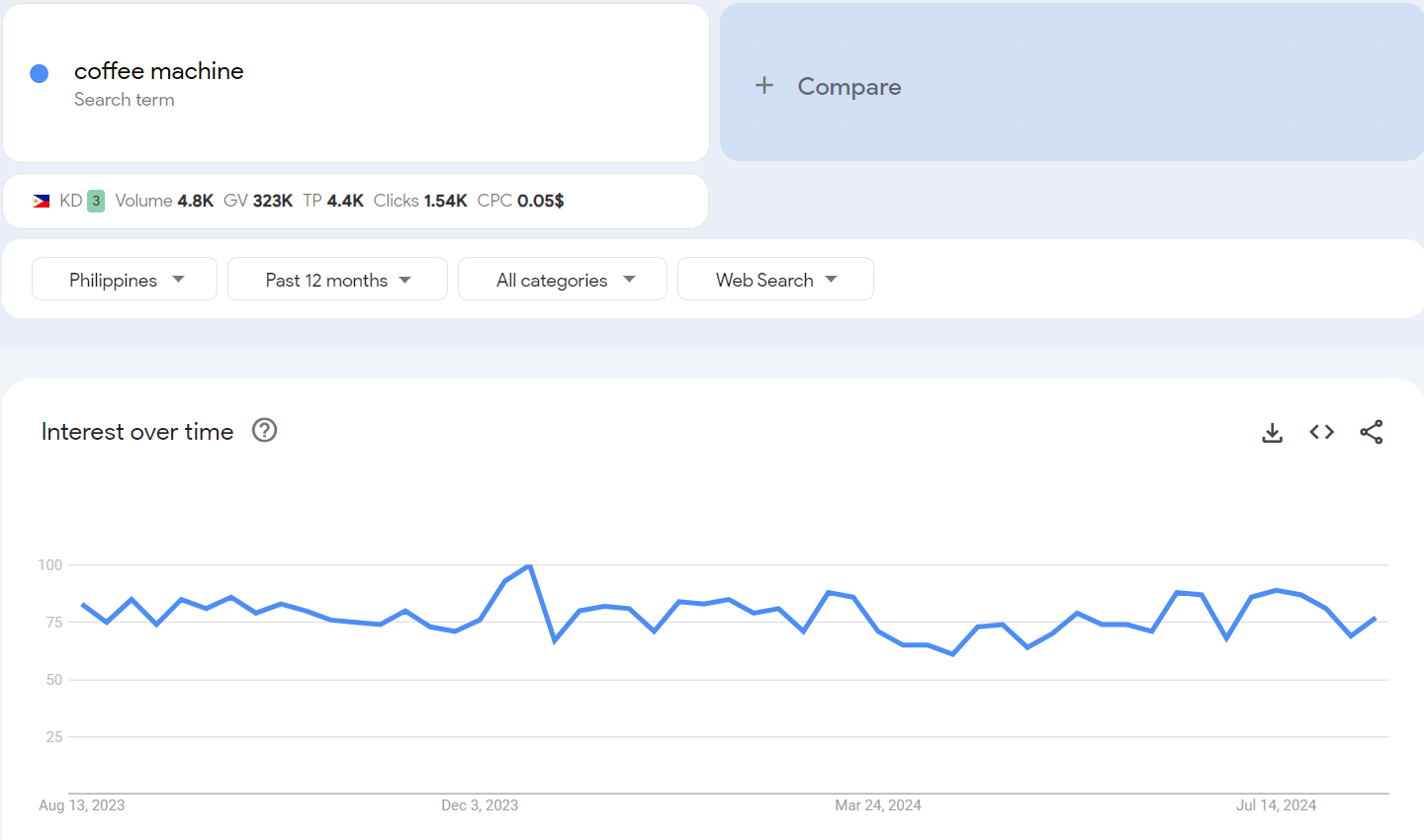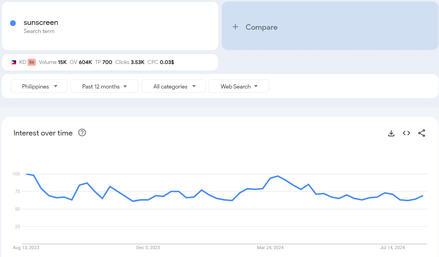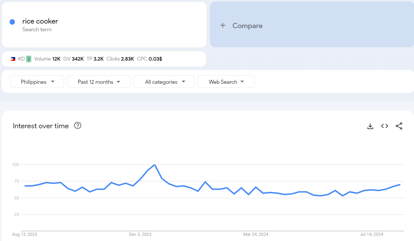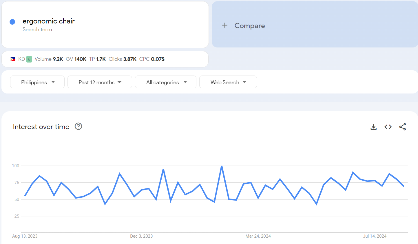 With the help of Google Trends and Google Keyword Planner, we were able to get a pretty clear look at what the trending products are in the Philippines to sell this year based on YoY growth and search volume from May 2023 to May 2024. We also took a look at the interest over time for the past five years which you can view in the Google Trends graphs below.