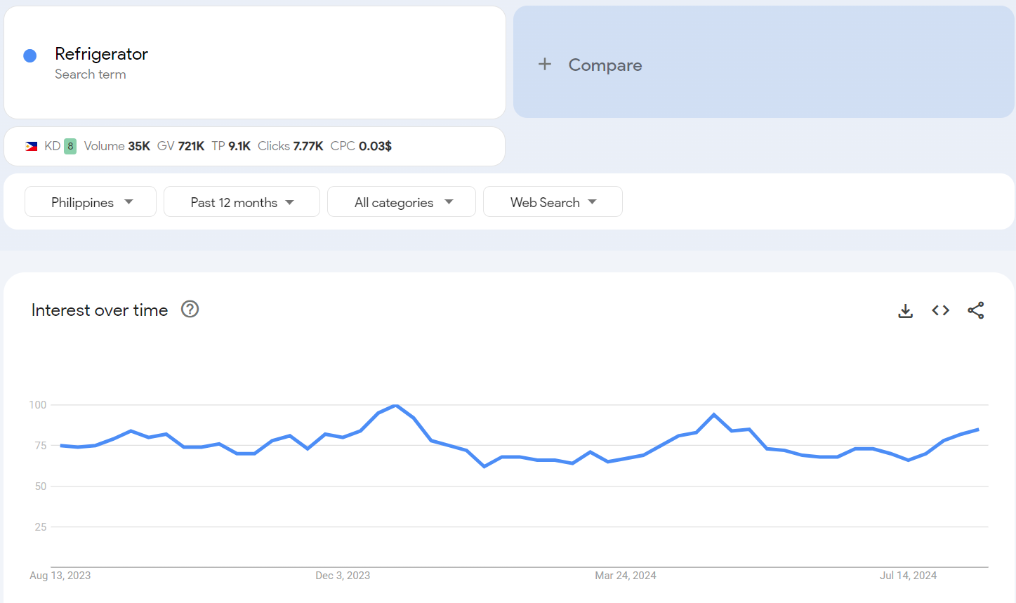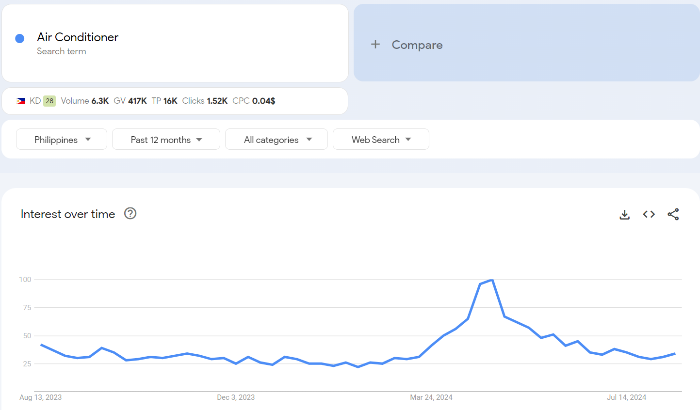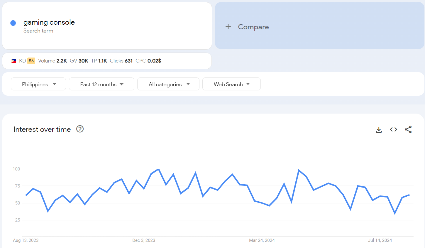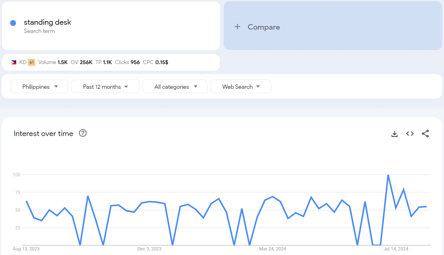 With the help of Google Trends and Google Keyword Planner, we were able to get a pretty clear look at what the trending products are in the Philippines to sell this year based on YoY growth and search volume from May 2023 to May 2024. We also took a look at the interest over time for the past five years which you can view in the Google Trends graphs below.