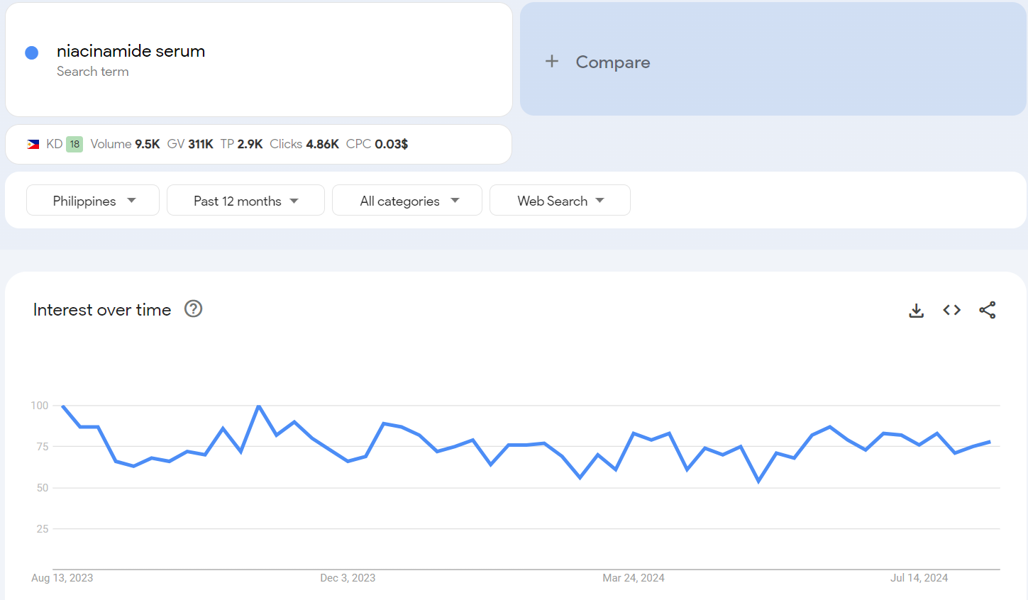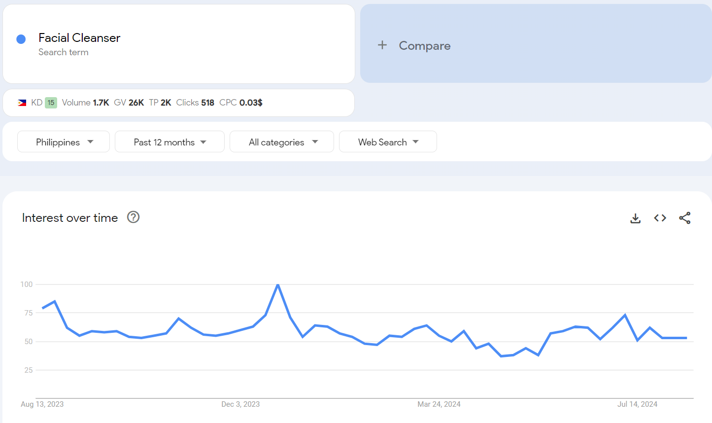 Filipino shoppers are o track to spend more than US$2 billion annually on skincare products by 2027. This category includes facial creams, cleansers, lotion, and beauty products. Looking at the Google Trends data, this category has been on a dramatic upward trend for the past several years.