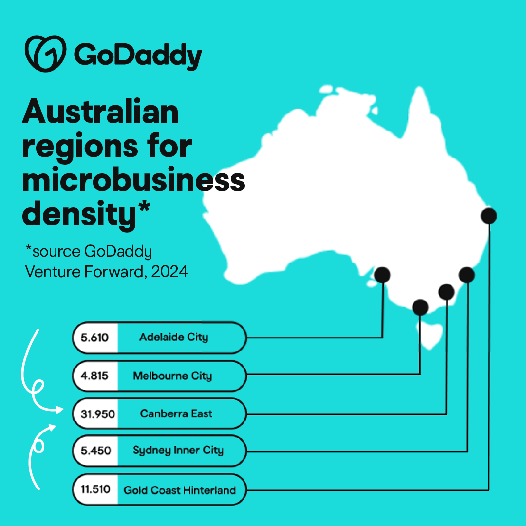 Instead, new data from GoDaddy’s Venture Forward Research project has found that the online microbusiness capital of Australia is actually Canberra!