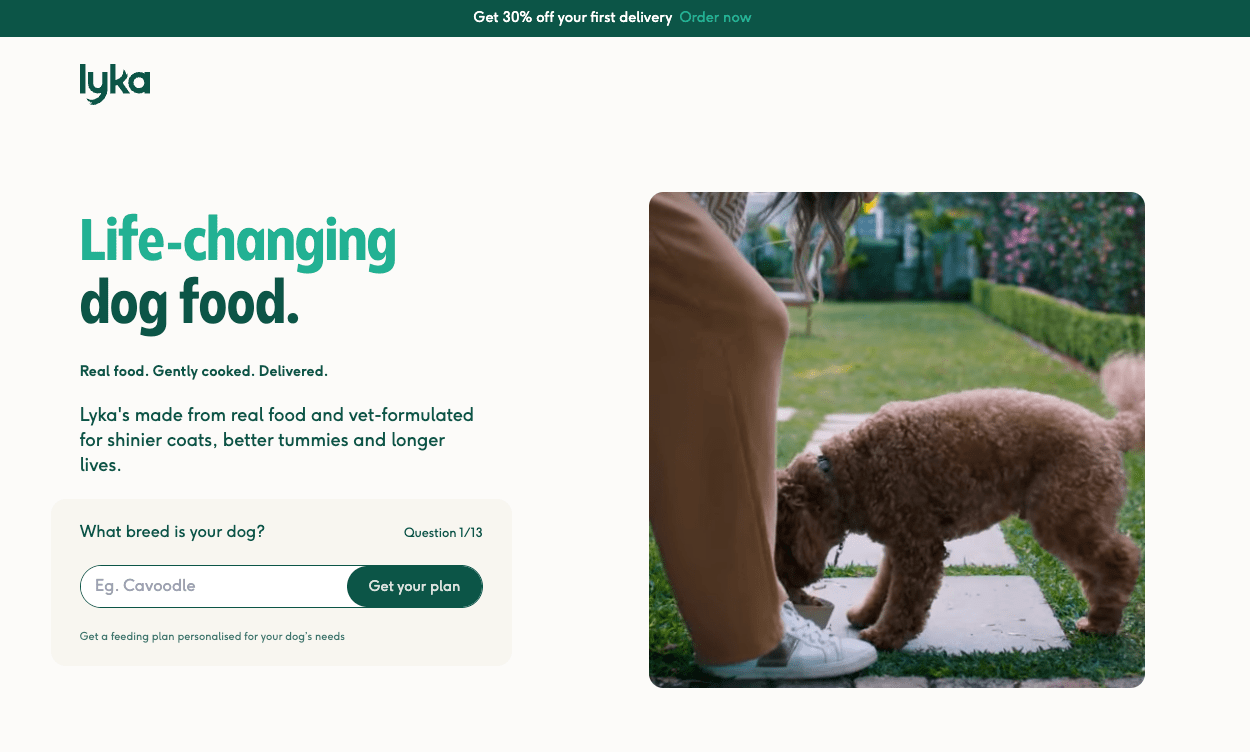 Lyka, an Aussie dog food company, specialises in crafting small-batch food tailored to your furry friend's needs. They have a dedicated landing page where you can get a custom feeding plan for your beloved dog.