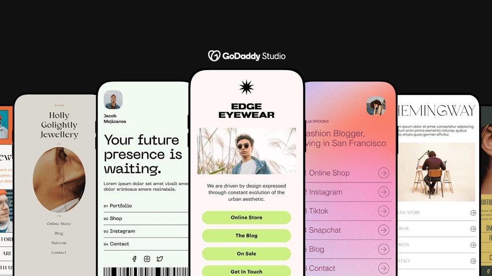 - Use GoDaddy Studio’s image and video creation tools to help promote your Link in Bio to your audience. Your beautifully designed content can now drive more traffic, more efficiently.