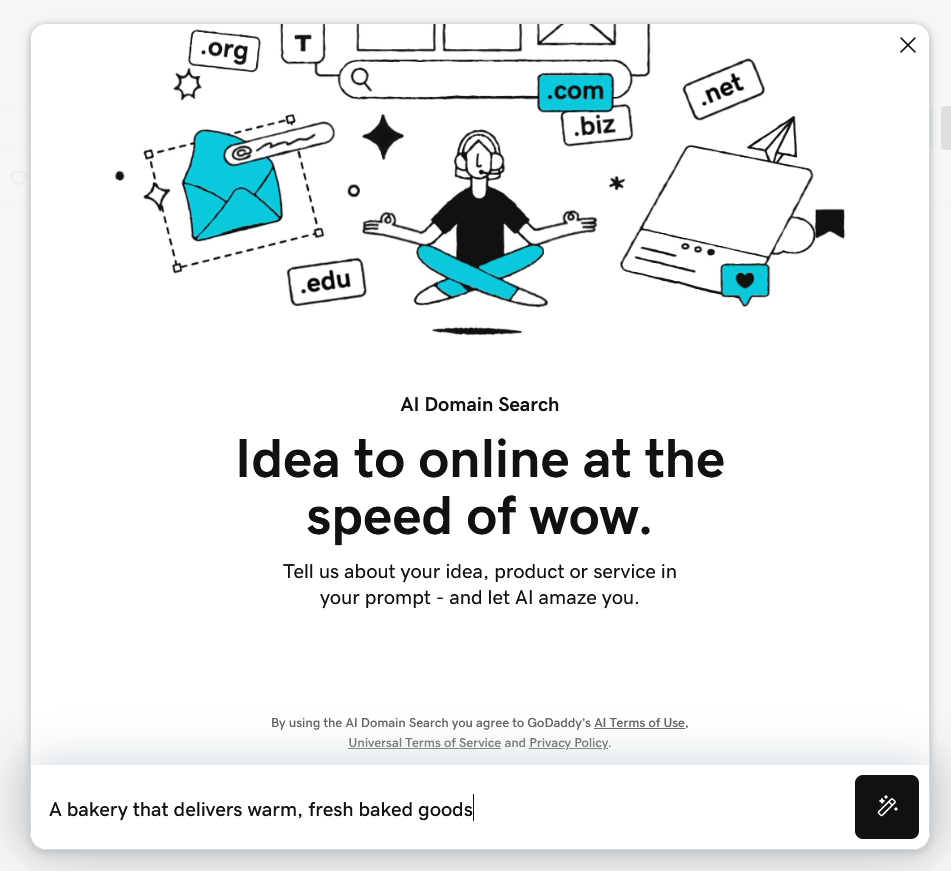 GoDaddy Airo simplifies this process by using AI algorithms to present relevant and available business name ideas based on your industry and business description.
