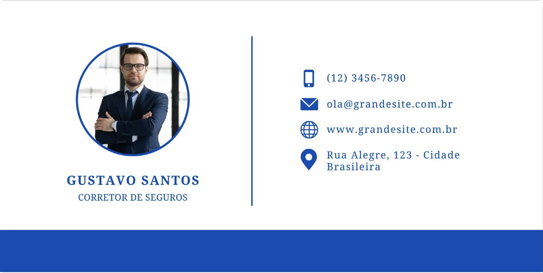 Nesse exemplo, há dois números de contato e o endereço de e-mail profissional para que o cliente tire qualquer tipo de dúvidas.