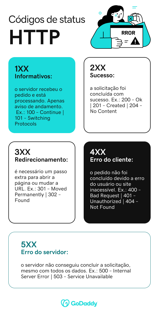 Nem sempre esses códigos significam erro: alguns apenas confirmam que a página foi carregada com sucesso ou que houve um redirecionamento. Mas, quando o código indica falha, os números explicam o motivo do problema.
