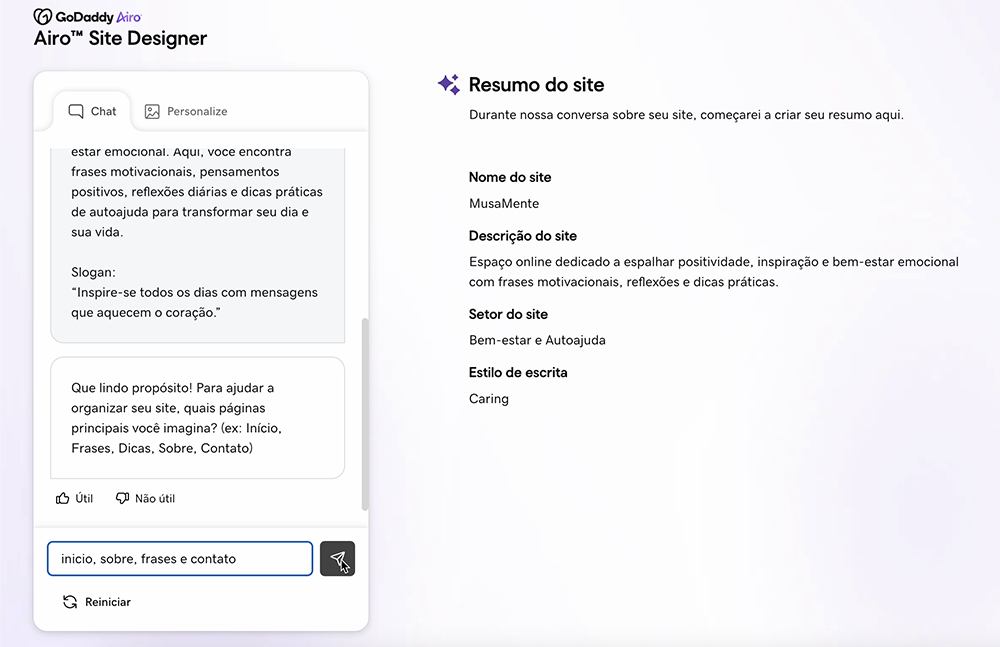 Apesar de ser possível criar um site pelo ChatGPT, apenas o Airo® da GoDaddy desenvolve todas as suas ideias automaticamente. Entenda a seguir!