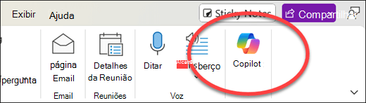 Clique no ícone do Copilot, no canto direito da barra de ferramentas.