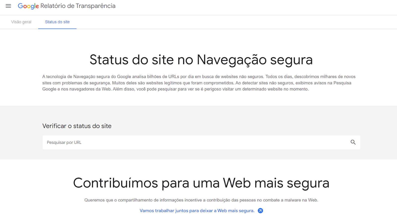 Estamos falando do Status do Site no Navegação Segura, uma ferramenta disponível no Relatório de Transparência do maior motor de busca do mundo.