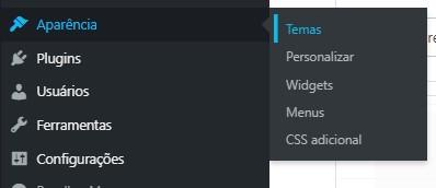Para criar uma landing page no Wordpress do zero, o primeiro passo é fazer sua conta no Wordpress. Em seguida, no menu lateral, clique em Aparência e selecione a opção Temas.