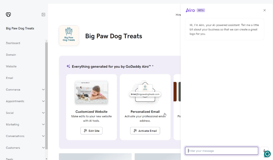 - Acesse a plataforma GoDaddy Airo
