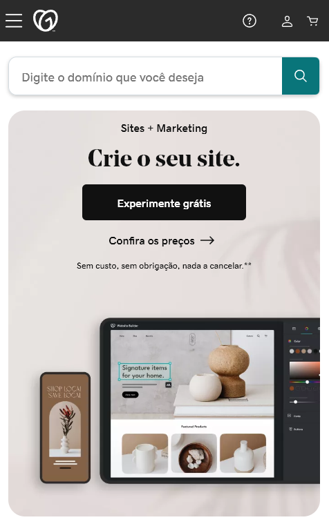 Se você ainda não tem um site, pode criá-lo do zero de forma completamente responsiva com a GoDaddy.