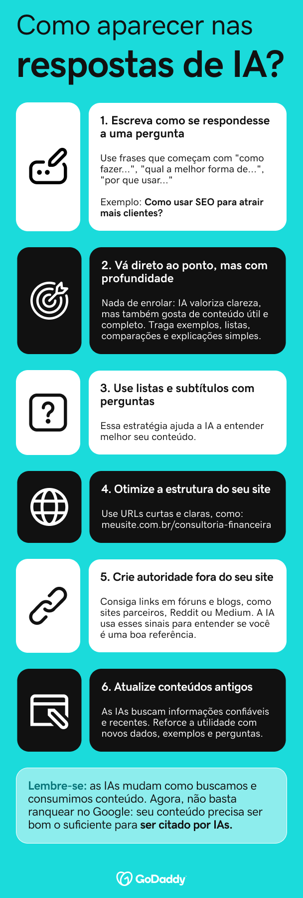 - SEO mudou com a IA - agora, seu conteúdo precisa ser entendido por IAs, como o ChatGPT, para ser encontrado;