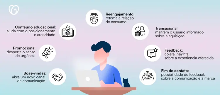 Cada tipo de e-mail tem seu próprio objetivo na jornada do cliente. Por isso, escolher a estrutura certa pode fazer toda a diferença no resultado das campanhas.