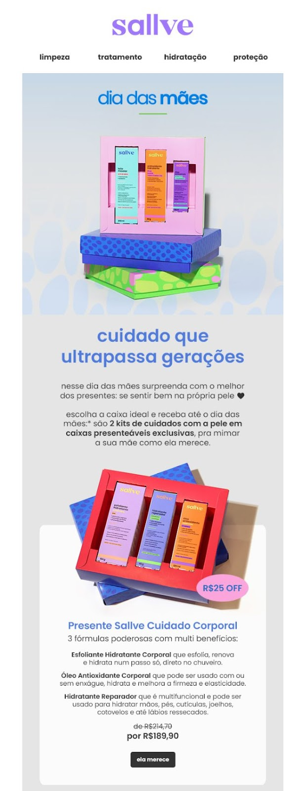 - Presenteie sua mãe (apelo emocional ligado às datas comemorativas).