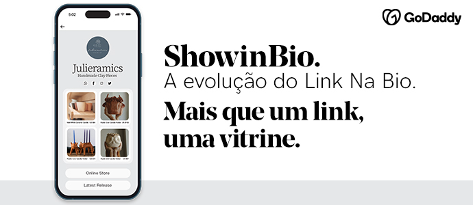 E o melhor de tudo? Temos a ferramenta ideal para você: a Show in Bio da GoDaddy. Assim, você pode centralizar em um só link todas as páginas que você deseja divulgar. Em vez de limitar o usuário a uma única ação, você cria uma vitrine interativa.