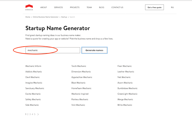 Using Anadea’s company name generator, along with the keywords that you’ve brainstormed, will give you endless ideas. Anadea is a U.S. company that develops web and mobile applications, but this online tool is completely free for anyone to use.