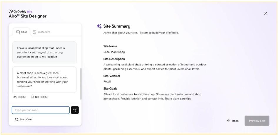 Airo Site Designer is available now for all GoDaddy Managed Hosting for WordPress plans. Simply choose “Airo Site Designer” when creating a new site to unlock the full experience.