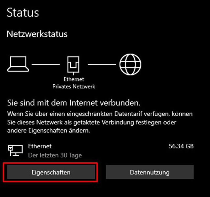 - Unter Eigenschaften findest du deine IPv4-Adresse.