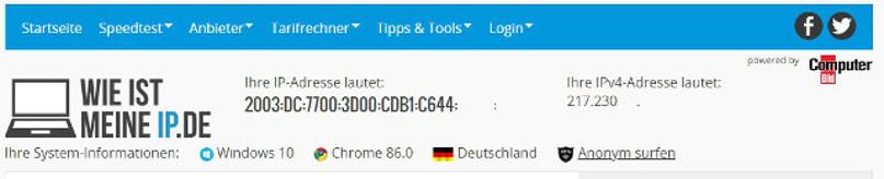 Deine externe IP-Adresse findest du über Webseiten wie wieistmeineip.de. Beim Aufruf der Seite wird deine IP-Adresse abgefragt, was übrigens jeder Server macht. Im Gegensatz zu anderen Servern, die deine Daten speichern, zeigt wieistmeineip.de deine Adresse an, unter der dein Router erreichbar ist.