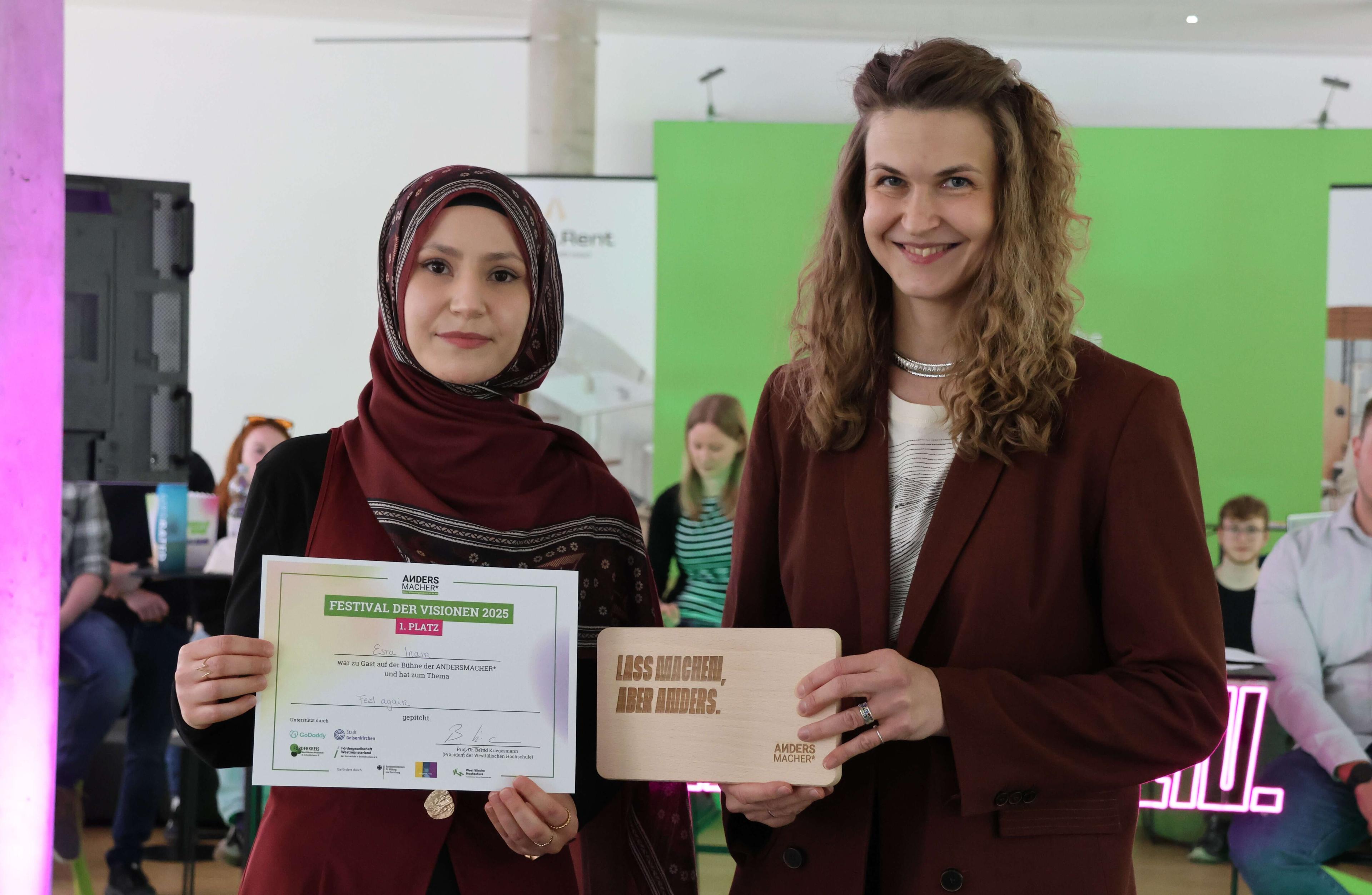 Der erste Platz ging mit einem von GoDaddy gestifteten Preisgeld in Höhe von 1.000 Euro an das Projekt Feel Again – Phantom Away von Esra Inam, ein AR-gestützter Therapieansatz für Menschen mit Phantomschmerzen. Mit dieser mutigen und empathischen Vision überzeugte sie die Jury nicht nur technisch, sondern auch auf emotionaler Ebene.