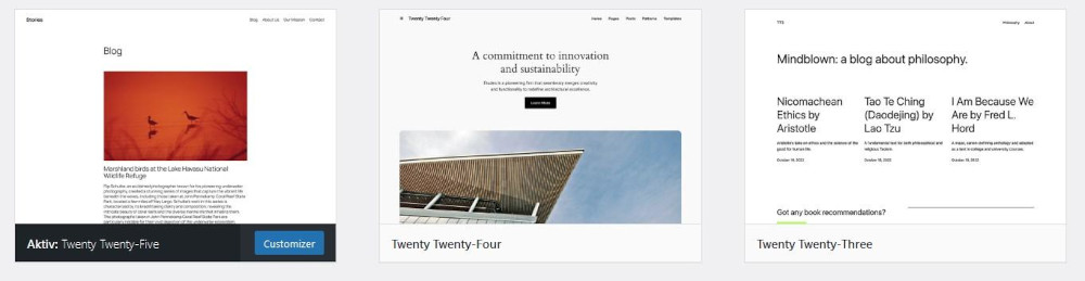 Für Blogprojekte ist Twenty Twenty-Five besonders geeignet. Du bekommst verschiedene Design-Vorlagen: