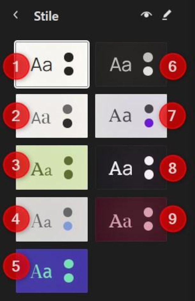 Ob Portfolioseite, Blog oder Shop – über Design → Website-Editor → Stile kannst du verschiedene Style-Vorlagen auswählen. Jede Vorlage definiert Farben, Abstände und Schatten. Insgesamt stehen dir neun Style-Varianten zur Verfügung: