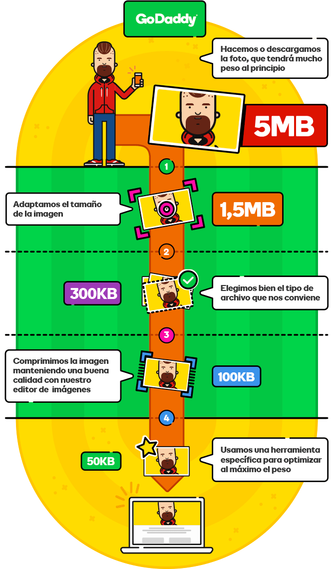Para optimizar el tamaño de las imágenes lo primero es conocer las dimensiones que deben tener para adaptarlas exactamente a ese formato. Como norma general, cuanto más grande es una imagen, mayor será el tamaño del archivo de imagen y más pesa.