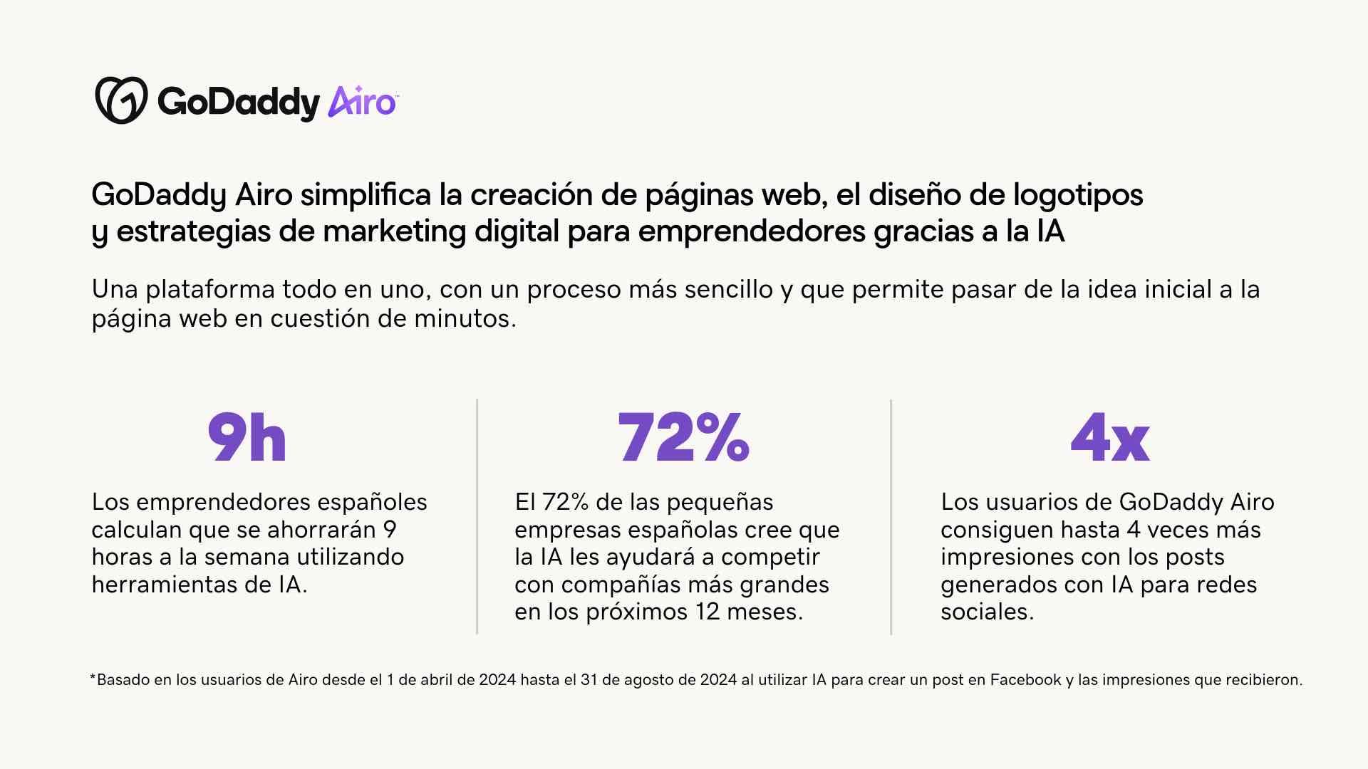 Con este objetivo, GoDaddy Airo llega a España como una solución impulsada por Inteligencia Artificial que ayuda a los pequeños negocios a crear su identidad digital y gestionar su presencia online en cuestión de minutos.