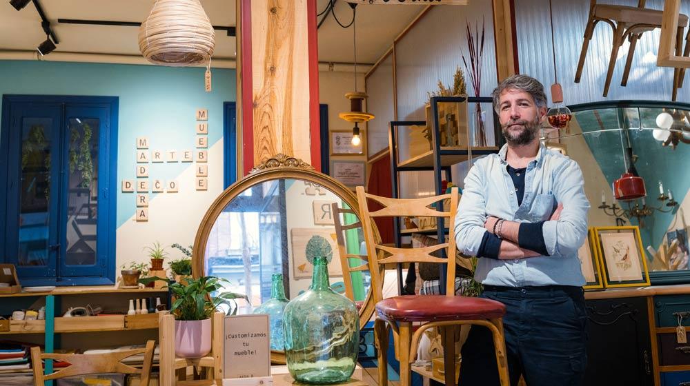 Bruno es el fundador de ArteB Decoración, una tienda y taller de decoración en el que restaura, diseña y fabrica muebles de manera personalizada y sostenible.