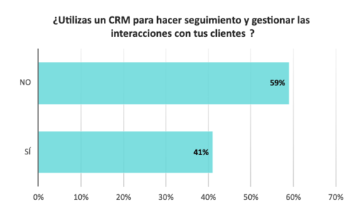 Solo el 41% de los pequeños empresarios utiliza un CRM para gestionar y hacer un seguimiento de las interacciones con sus clientes.