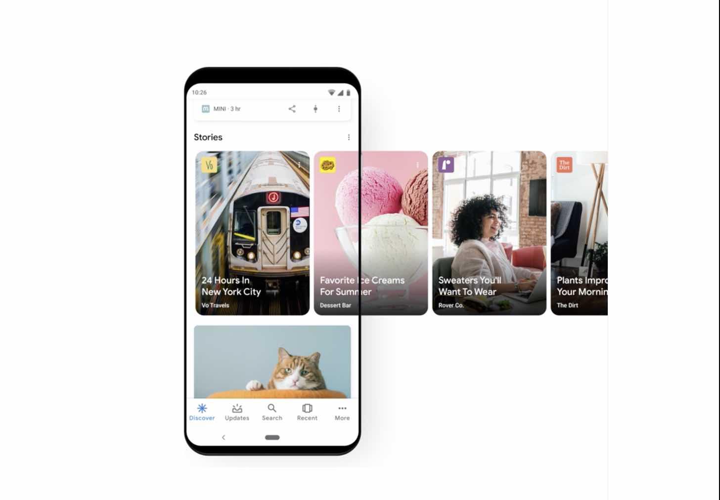 - Accediendo a Google Discover, donde se muestran en formato de carrusel en Estados Unidos, India y Brasil o en forma de tarjeta única en Estados Unidos.