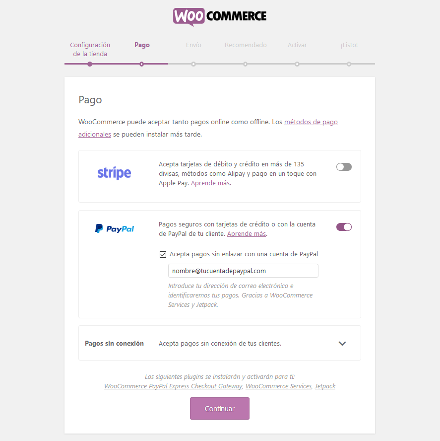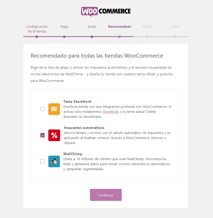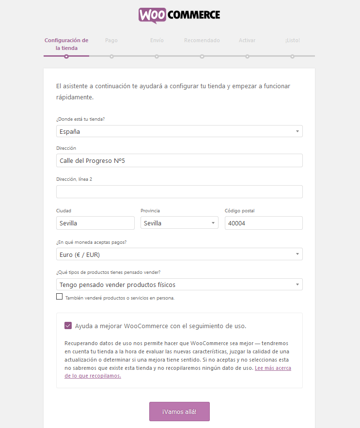 - A partir de ahí, será el propio WooCommerce el que te guiará a través de un asistente de configuración.